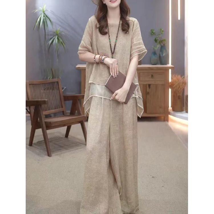 セットアップ レディース 夏 半袖 上 スーツ セットアップ パンツスーツ 人気 ダークベージュ グレー M L XL 2XL 3XL