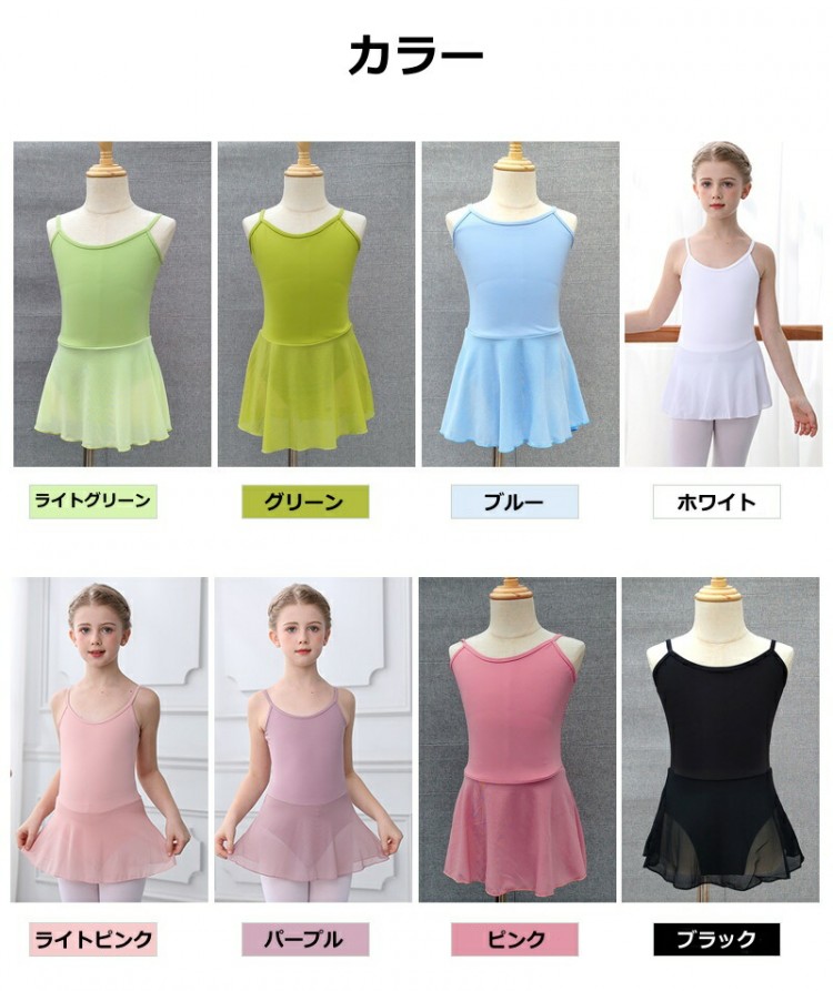 バレエ レオタード 子供用 ダンス衣装 スポーツ アウトドア 豊富 ライトグリーン グリーン ブルー ホワイト ライトピンク パープル ピンク ブラック イエロー サーモンピンク 120 130 140 150 160 170 180 190