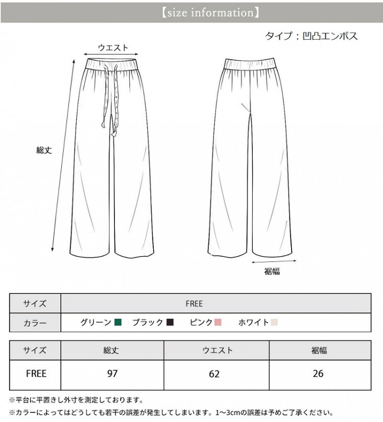 早い者勝ち オフ率50%以上美脚 ワイ ボトムス パンツ 新登場! 楊柳タイプグレー 楊柳タイプブルー 楊柳タイプブラック 楊柳タイプグリーン 楊柳タイプホワイト 楊柳タイプピンク 凹凸エンボスブラック 凹凸エンボスホワイト 凹凸エンボスピンク 凹凸エンボスグリーン