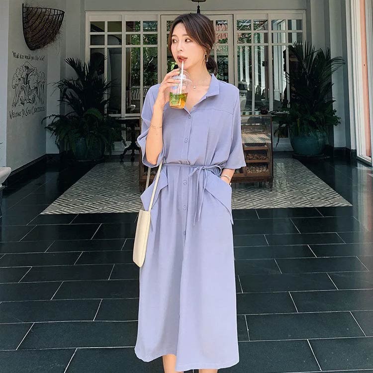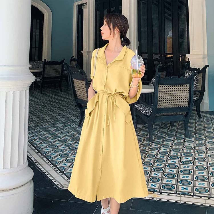 シャツワンピース 高見え きれいめ 半 レッド イエロー パープル S M L XL 2XL