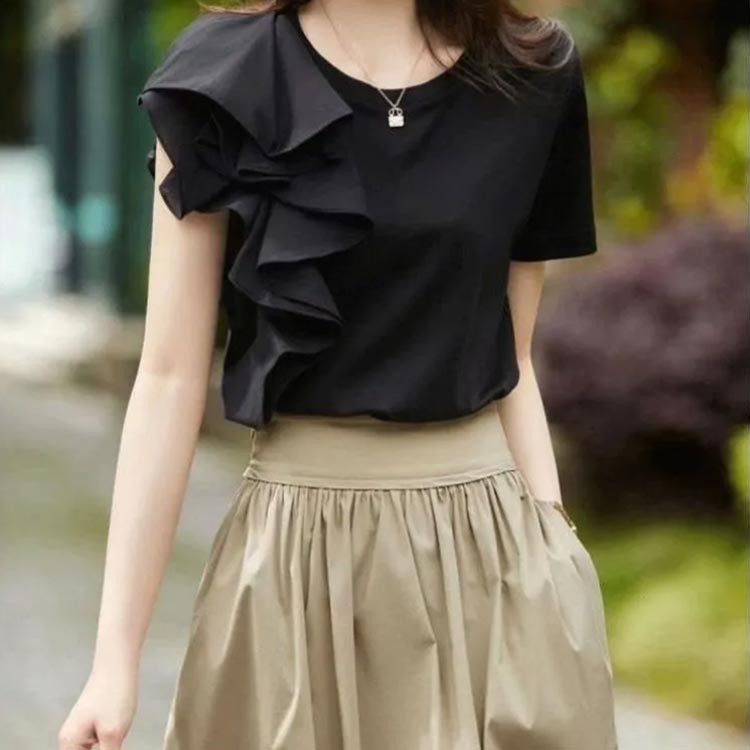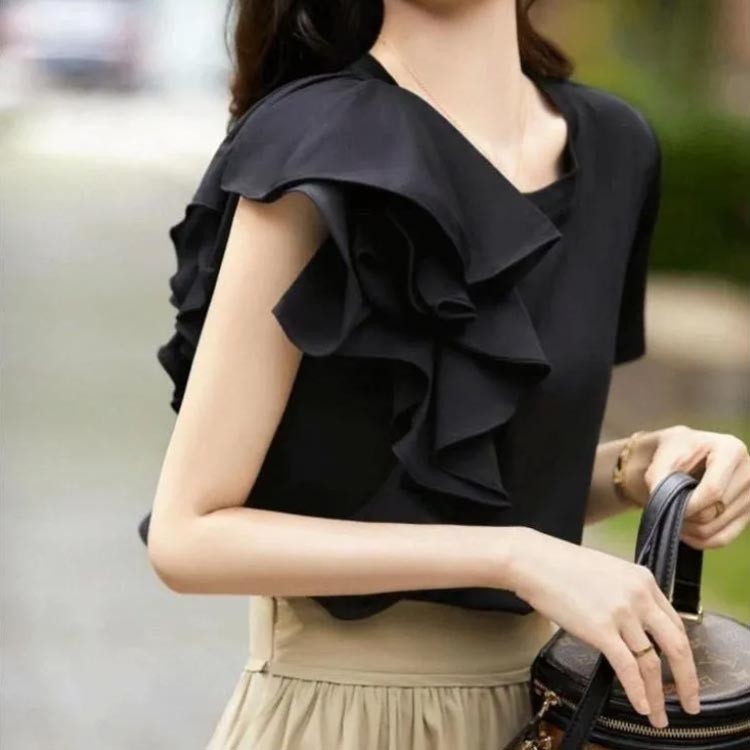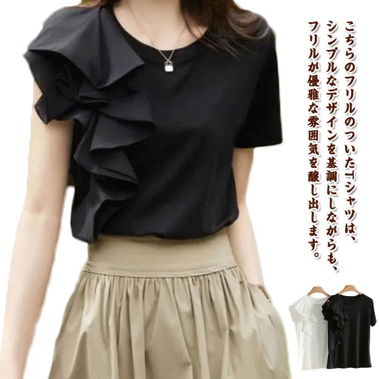 フリル ブラウス レディース カットソ レディースファッション 特集 ホワイト ブラック S M L XL 2XL