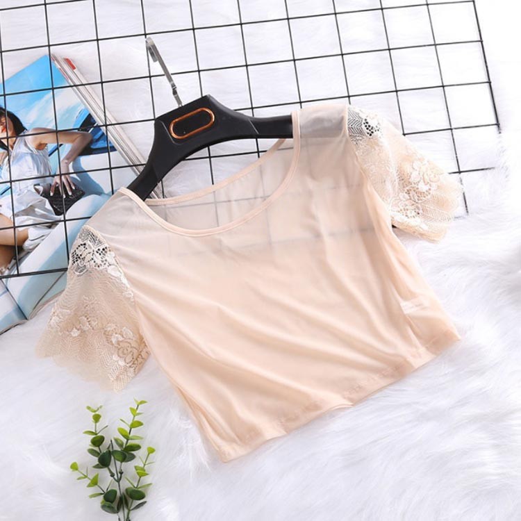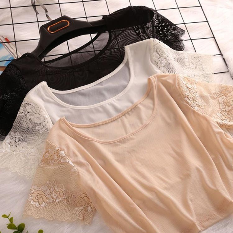 フリル袖 透け感 半袖 インナー 付け トップス Tシャツ カットソー 人気 ホワイト ブラック ベージュ S M L XL 2XL 3XL