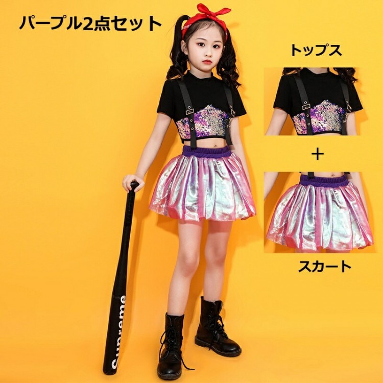 キッズ ダンス衣装 セットアップ イベ トップス ニット セーター ニットキャミソール 通販 パープル2点セット ピンク2点セット 男の子2点セット 110 120 130 140 150 160 170