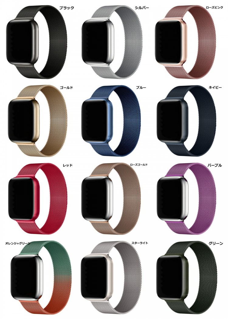 Apple watch 12色 バンド ブラック シルバー ローズピンク ゴールド ブルー ネイビー レッド ローズゴールド パープル オレンジ+グリーン スターライト グリーン 38/40/41/(10代)42mm 42/44/45/46/49mm