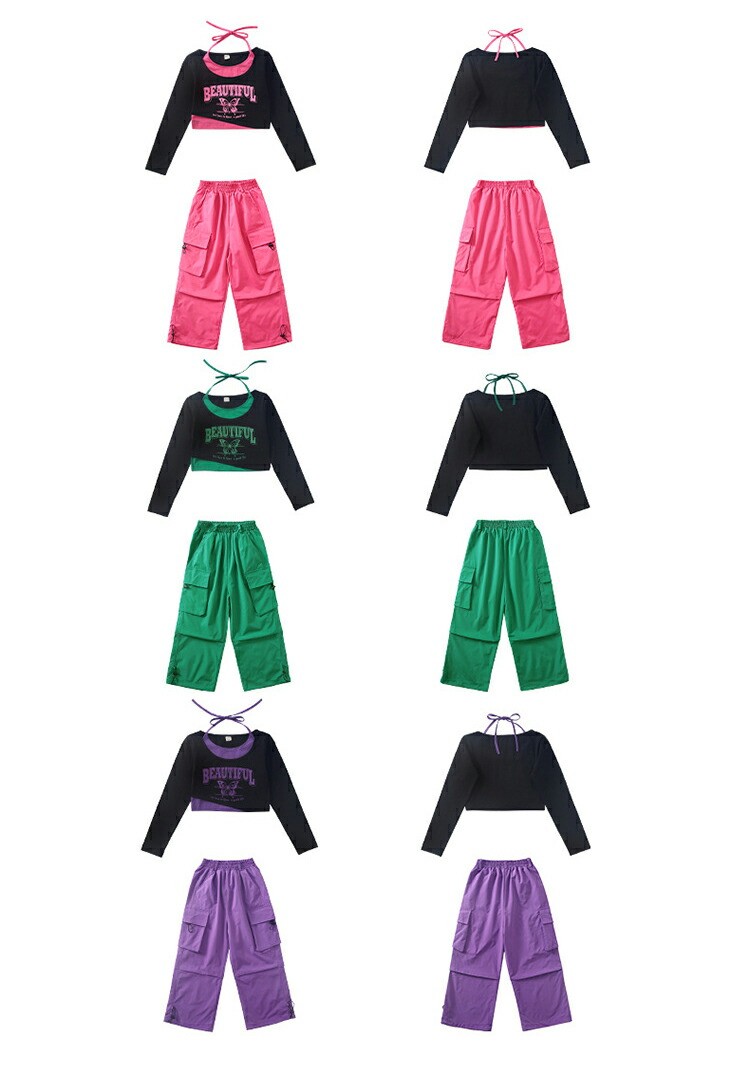 キッズ ダンス衣装 セットアップ かっ レディースファッション 人気 ローズトップス単品 グリーントップス単品 パープルトップス単品 ローズパンツ単品 グリーンパンツ単品 パープルパンツ単品 ローズ2点セット グリーン2点セット パープル2点セット 110 120 130 140 150 160 170 180