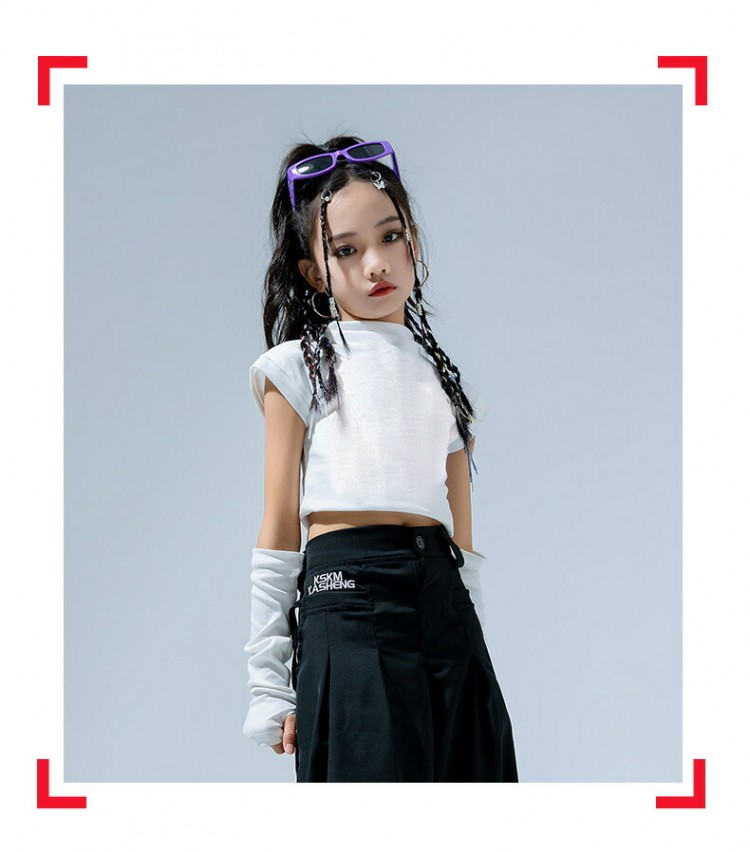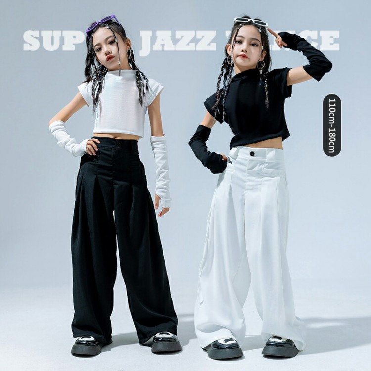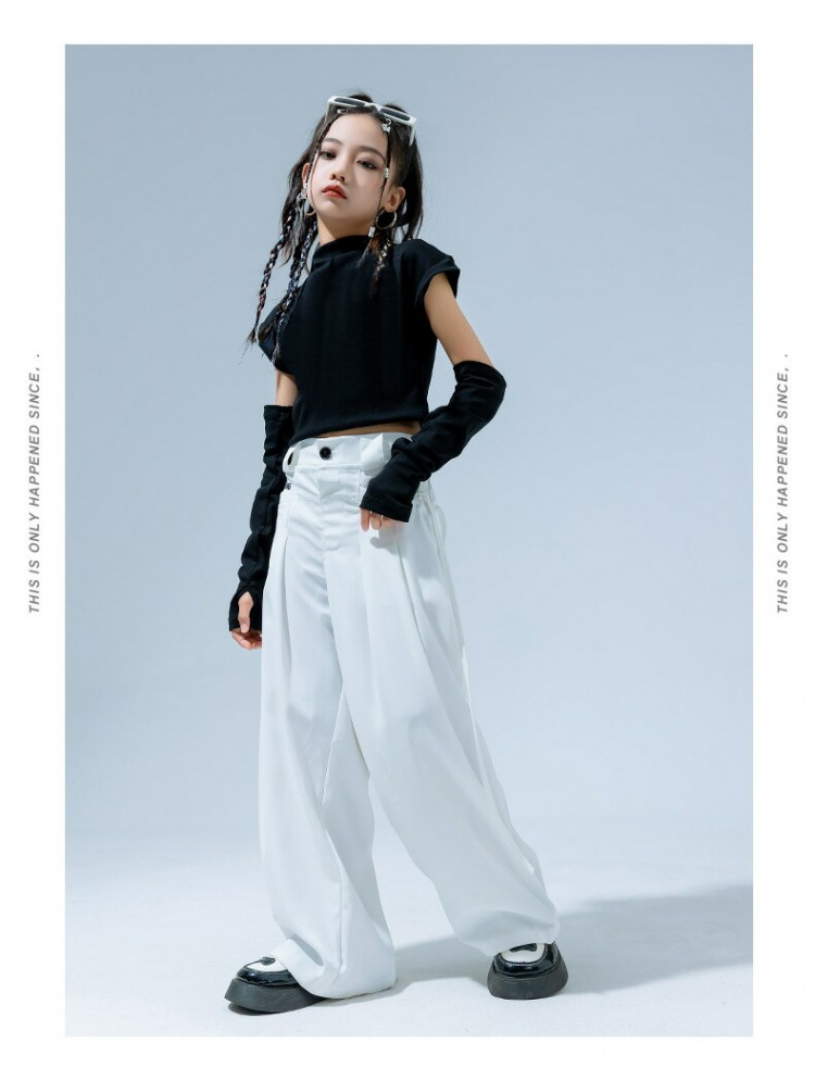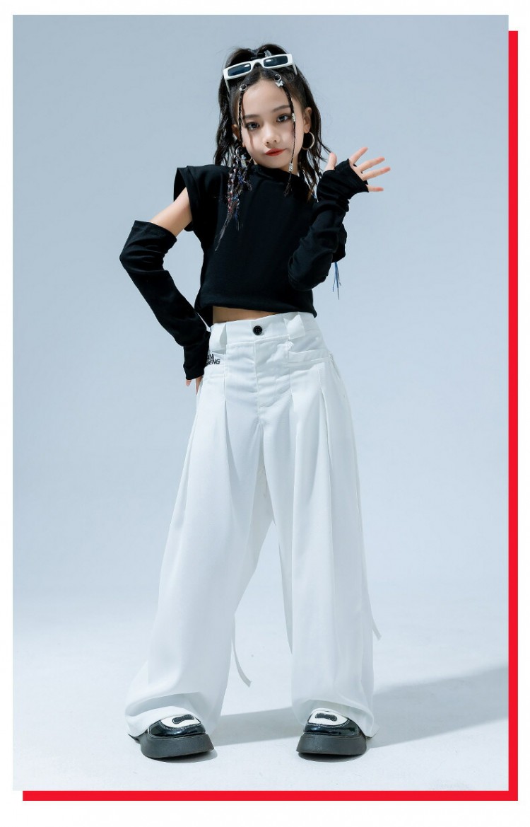 キッズ ダンス衣装 セットアップ かっ レディースファッション 通販 白トップス単品(腕カバー付き) 黒トップス単品(腕カバー付き) 白パンツ単品 黒パンツ単品 110 120 130 140 150 160 170 180