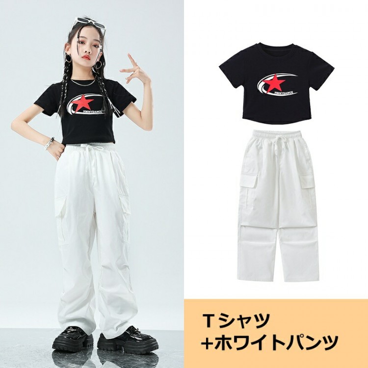 キッズ ダンス衣装 パンツ イベント レディースファッション 人気 Tシャツのみ ホワイトパンツのみ ピンクパンツのみ Tシャツ+ホワイトパンツ Tシャツ+ピンクパンツ 110 120 130 140 150 160 170 180