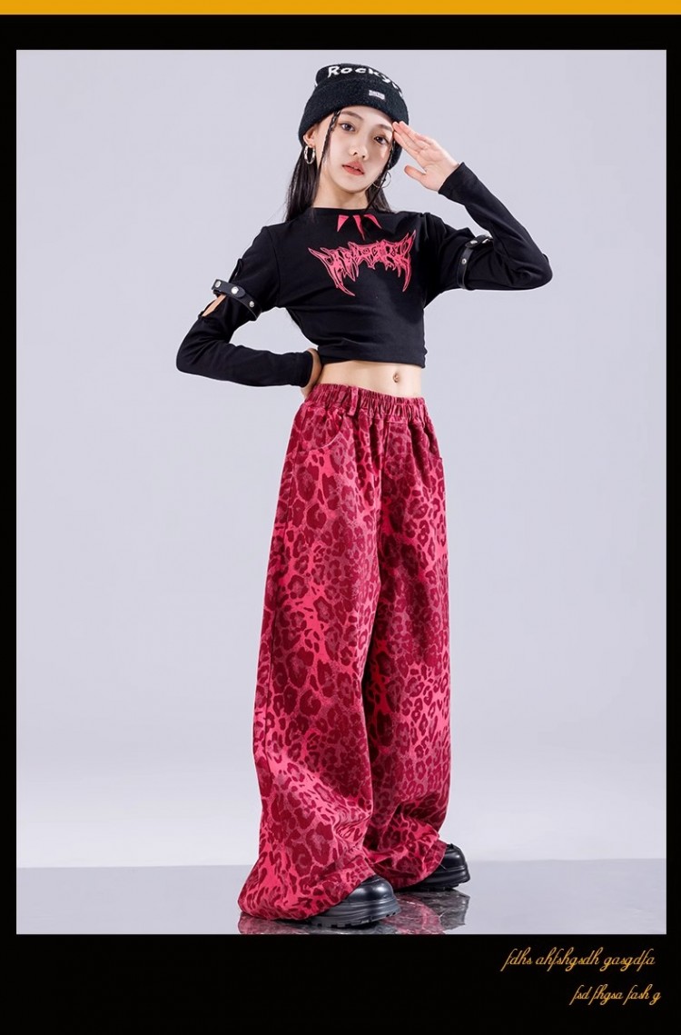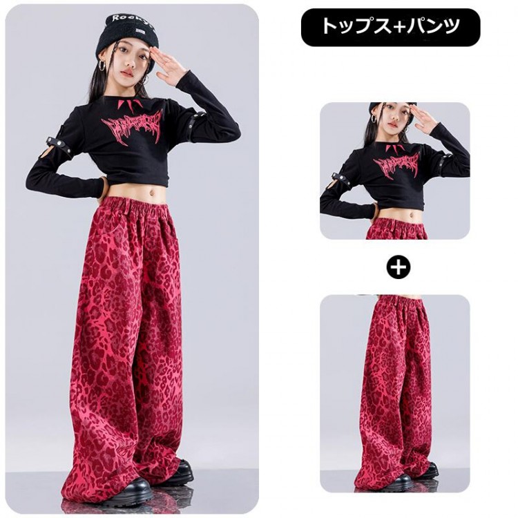 キッズ ダンス衣装 へそ出し ヒョウ柄 レディースファッション 特集 トップスのみ パンツのみ トップス+パンツ 110 120 130 140 150 160 170 180