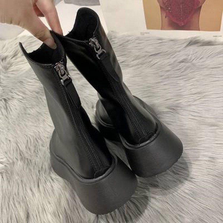 ショートブーツ 5cmヒール 厚底 ラ レディース靴 ブーティ 新登場! ブラック ブラウン 22.5cm 23.0cm 23.5cm 24.0cm 24.5cm