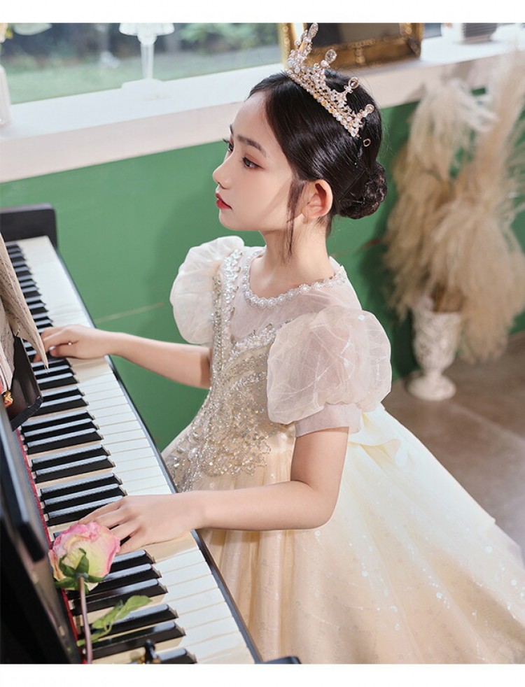 ドレス 2色 子供 ピアノ発表会 子供 キッズ ベビー マタニティ 早い者勝ち シャンパン ホワイト 110 120 130 140 150 160