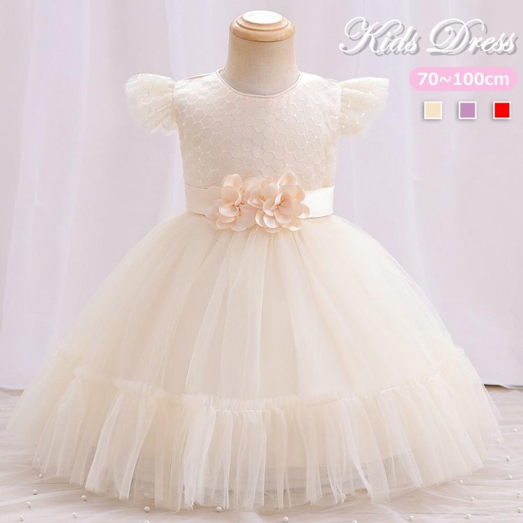 ドレス 3色 子供 ピアノ発表会 子供 キッズ ベビー マタニティ 新作 レッド シャンパン パープル 70 80 90 100