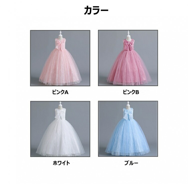 ドレス 4色 子供 ピアノ発表会 子供 キッズ ドレス 新作 ピンクA ピンクB ブルー ホワイト 120 130 140 150 160 170
