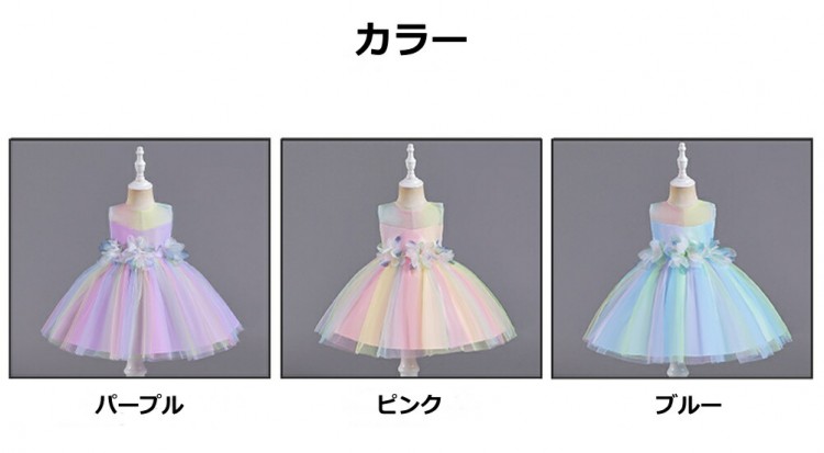 ドレス 3色 子供 ベビー 子供ドレス キッズ ドレス 続々入荷中 パープル ピンク ブルー 70 80 90 100