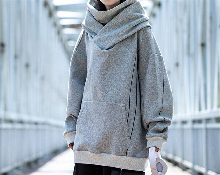 ボリュームネックパーカー 忍者パーカー トップス スウェット トレーナー 新作 グレー ブラック ブラウン M L XL 2XL