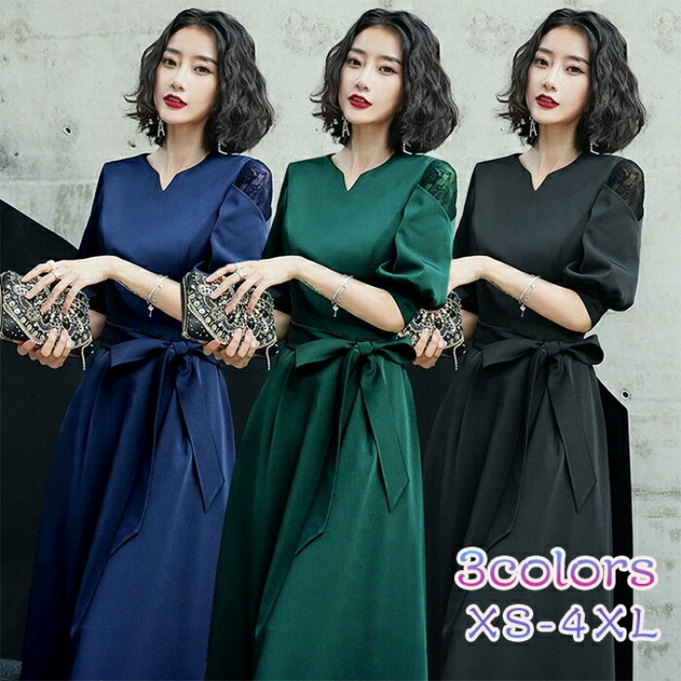 ロングドレス 母親 結婚式 ワンピース パーティードレス フォーマル 袖あり ファスナー 小さいサイズ 大きいサイズ