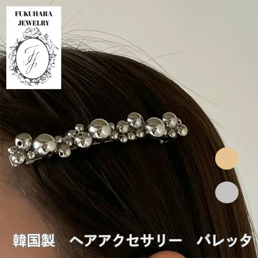 メタルボールバレッタ ゴールド シルバー ヘアアクセサリー 大人 トレンド ヘアアレンジまとめ髪 メタルボール パーティ カジュアル 韓国製 高品質 レディース アクセサリー