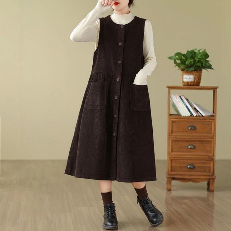 ロングジャンスカ きれいめ 大きいサイズ 通勤 スリット キーネック ワンピ ワンピース マタニティ 冬 ジャンパースカート レディース コールテン オールシーズン 袖なし