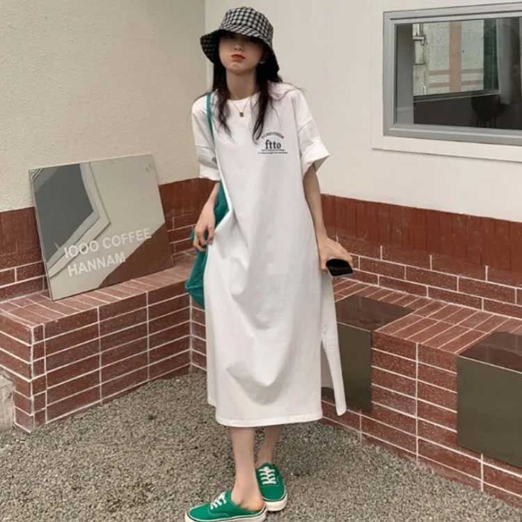 ワンピース 半袖 Tシャツ 夏 春 レディース ロングワンピ Tシャツワンピ ゆるワンピ サイドスリット プルオーバー ロング丈 部屋着 大きいサイズ 体型カバー ゆったり ルームウェア