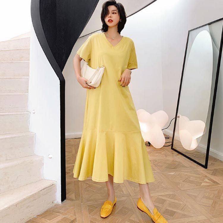 ワンピース 夏ワンピ ロング丈 半袖 丸首 ゆったり 大きいサイズ 体型カバー カジュアル シンプル 着痩せ 涼しい 通気性 トレンド 無地 ファッション 夏コーデ お出かけ デイリー ルームウ 旅行