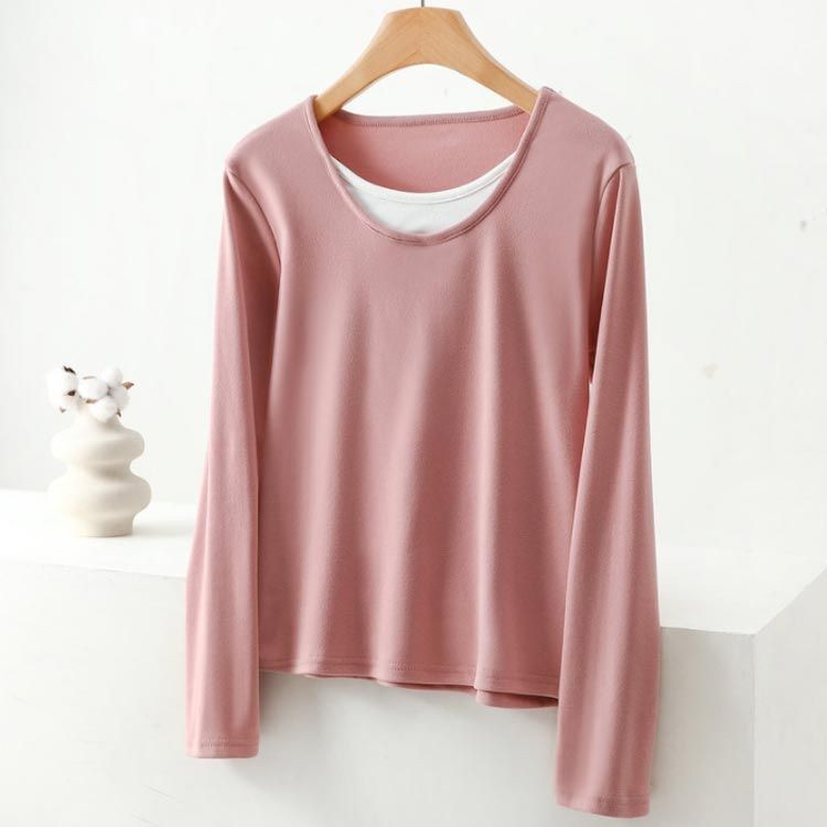 フェイクレイヤード Tシャツ レディース 裏起毛 長袖 インナー カットソー プルオーバー ス 着痩せ カジュアル おしゃれ L XL 2XL M