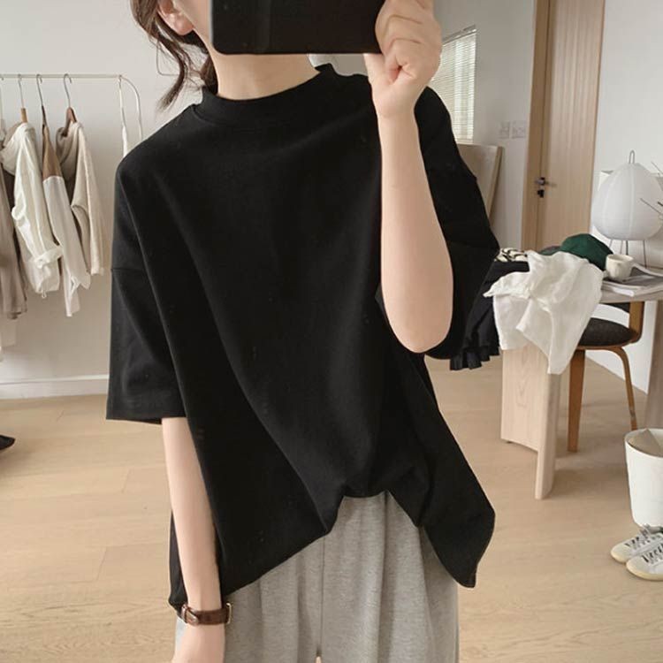 ハイネック Tシャツ レディース 夏 半袖 涼しい ス タートルネック カットソー ゆるT ボトルネック ゆったり 無地 おしゃれ 夏服 半袖tシャツ 半袖シャツ シンプル 春夏 白 黒 20代 韓国