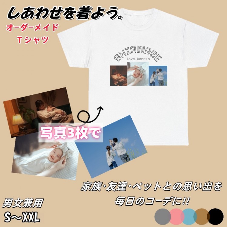 オリジナル Tシャツ 半袖 写真入り フォトTシャツ 名入れ しあわせ 思い出 ギフト 記念日 誕生日 プレゼント 家族 ペット 犬 赤ちゃん 子供 猫 カップル