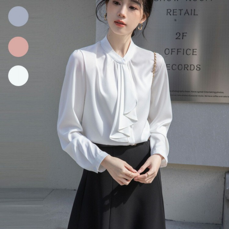 ブラウス オフィス スーツ インナー カットソー 長袖 レディース ボウタイ スカーフタイ リボンタイ 襟付き シフォン トップス 春 秋 大きいサイズ きれいめ カジュアル 通勤 白 女性