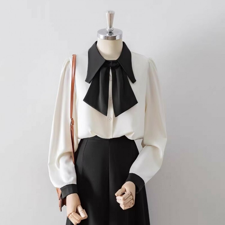 シアースリーブ ドッキングシャツ ボウタイシャツブラウス