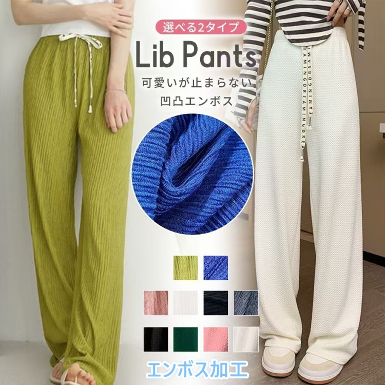 早い者勝ち オフ率50%以上美脚 ワイドパンツ パンツ レディース 春夏 エンボス加工 凹凸感生地 ストレートパンツ 楽ちん ウエストゴム ウェスト紐付き 楊柳タイプ 2025春 カジュアルパ 調整可