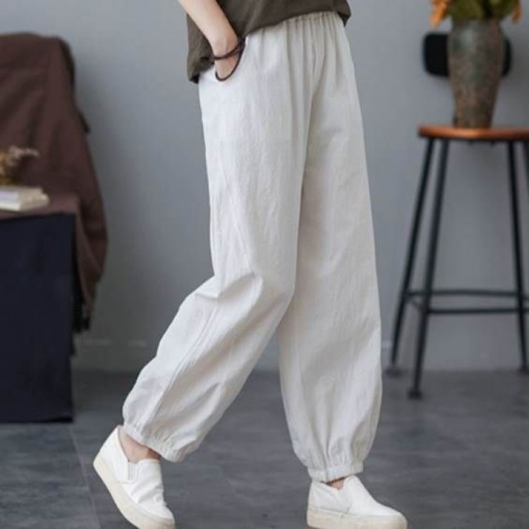 クロップトパンツ パンツ 春夏 綿麻 ボトムス サルエルパンツ ゆったり レディース 七分丈パンツ 夏 リネン リネンパンツ ゴム 体型カバー 美脚 涼しい 無地 部屋着 通気性 綿麻パ