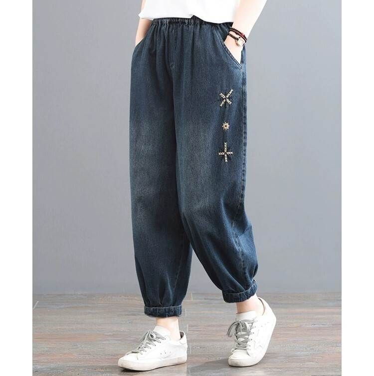 パンツ ズボン ボトムス カジュアル 夏 シンプル ボーイッシュ 刺繍 クール アンクル丈 ラフ ポケット Gパン バルーン ワイドパンツ 無地 デニム かっこいい メンズライク こなれ感