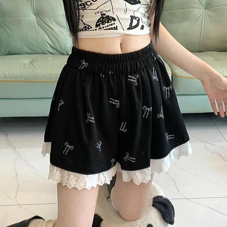 短パン スウェットパンツ 裾レース 春夏 ハーフパンツ ゆったり ショート丈 ショーパン レディース リボン ウエストゴム 夏 体型カバー ルームウェア カジュアル 可愛い