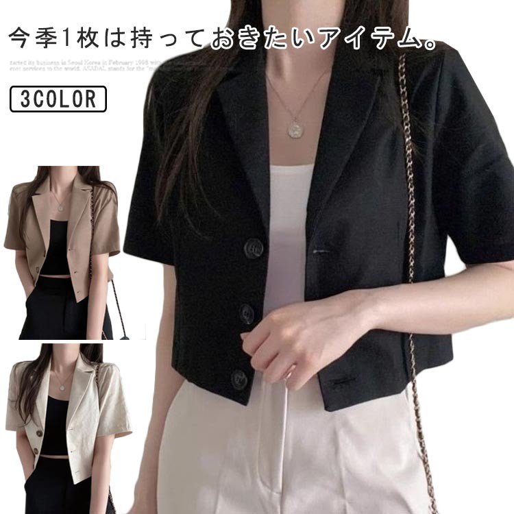 サマージャケット レディース テーラードジャケット ショートジャケット 薄手 ショート丈 半袖 夏 着 せ サマー ジャケット 冷房対策 アウター カジュアル スリムスーツ 春 トップス