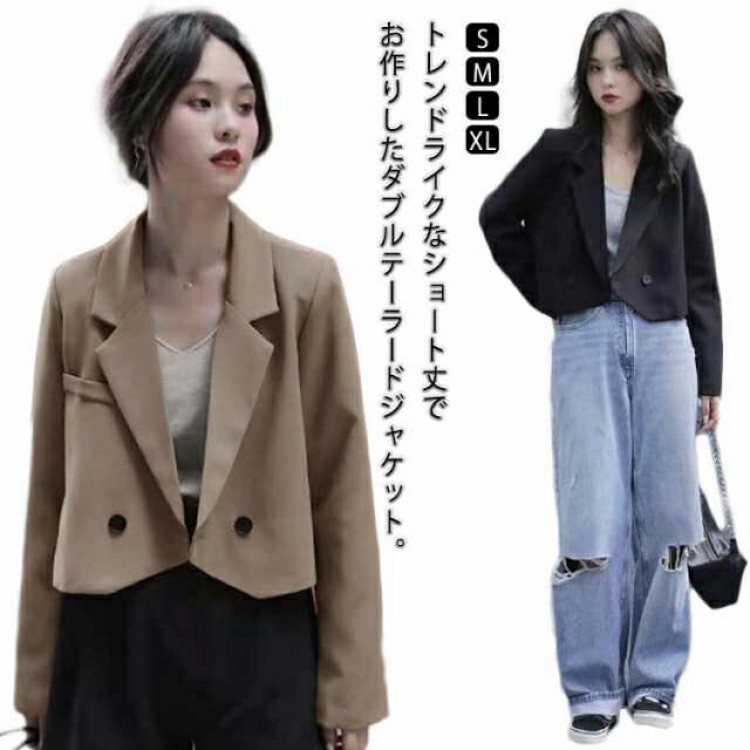テーラードジャケット ダブル レディース 春 夏 秋 ショート ジャケット テーラード 長袖 ショート丈 ショートジャケット ショートテーラード トップス 裏地あり 薄手 アウター