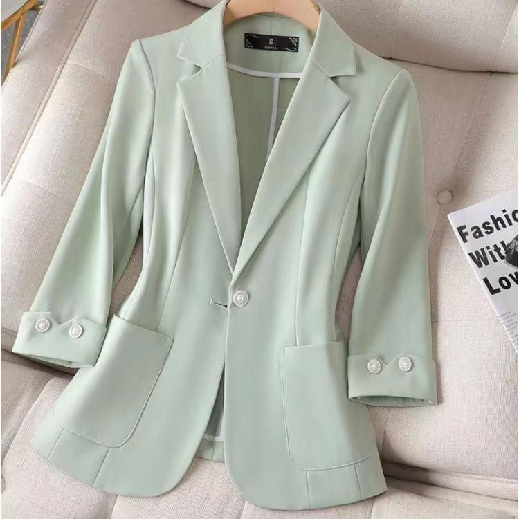 薄手 テーラードジャケット 軽い フィット ビジネス レディース スリム 裏地なし 7分袖 アウター パールボタン 涼しい 春 夏 カジュアル 通勤 サマージャケット おしゃれ