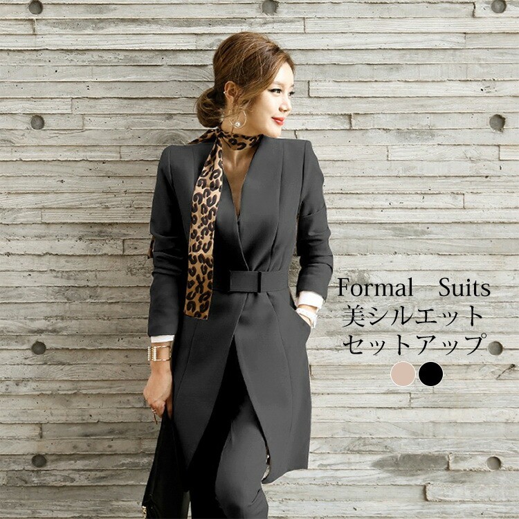 スーツ レディース パンツスーツ セットアップ フォーマルスーツ ジャケット パンツ ロング 黒 ブラック 長袖 無地 シンプル フォーマル ビジネス オフィス 通勤 卒業式 入園式 ママ 卒