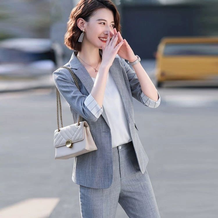 パンツスーツ スリム 薄手 レディース 夏 細身 フォーマル 2点 1ボタン 春 セレモニースーツ 7分袖 通勤 テーラードジャケット+テーパードパンツ オフィスカジュアル 上下