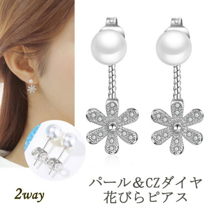 ピアス レディース 人気 雑誌掲載 キラキラお花モチーフ 花が佇む プレゼント 誕生日 女性 パールピアス