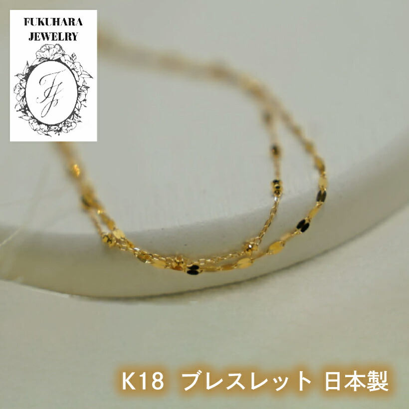 【高品質】K18 ブレスレット【品質保証書付】ジュエリー アクセサリー 地金 日本製 2連 サイズ調整 プレゼント入学式 卒業式 入園式 卒園式 つけっぱなし イエローゴールド レディース チェーン