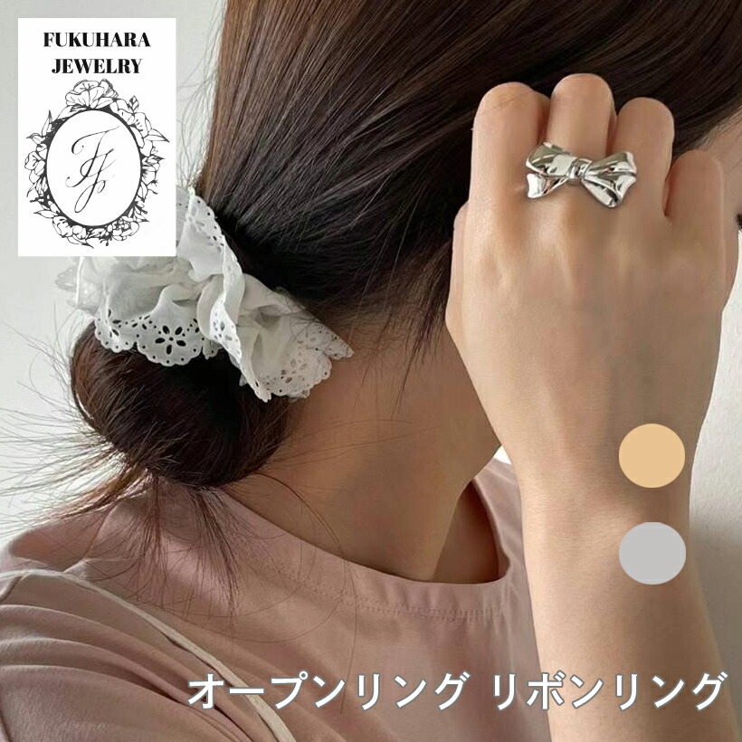リボンリング オープンリング ゴールド シルバー リボンモチーフ かわいい カジュアル きれいめ 重ね付け 普段使い リング 存在感 おしゃれ 可愛い 金 銀 流行 トレンド 誕生日 人気