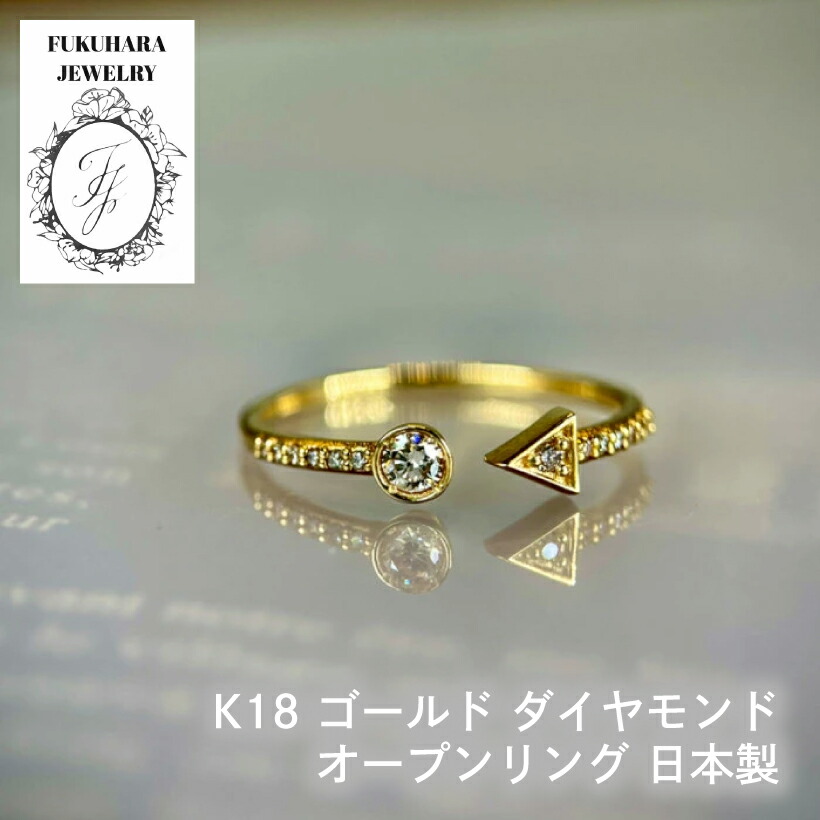 ダイヤモンドリング K18地金 リング 指輪 ダイヤモンドオープンリング イエローゴールド ゴールド 金 ダイヤ 日本製 ジュエリー プレゼント 誕生日 母の日 無料 サイズ直し 一回無料 ラッピング