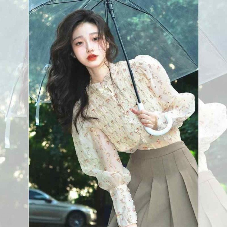 美 花柄 デザイン 春秋 トップス 長袖 シックで シャツ