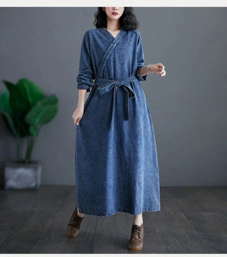 春 マキシワンピース テールライン デニム オフィスカジュアル