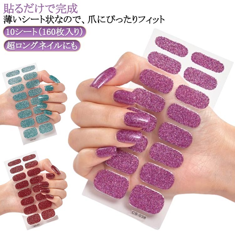 フット シンプル 10シート 160枚入 ネイルシール ジェル ネイル 硬化タイプ 半硬化 貼って硬化 ジェルネイル おしゃれ キラキラ 簡単 セルフネイル