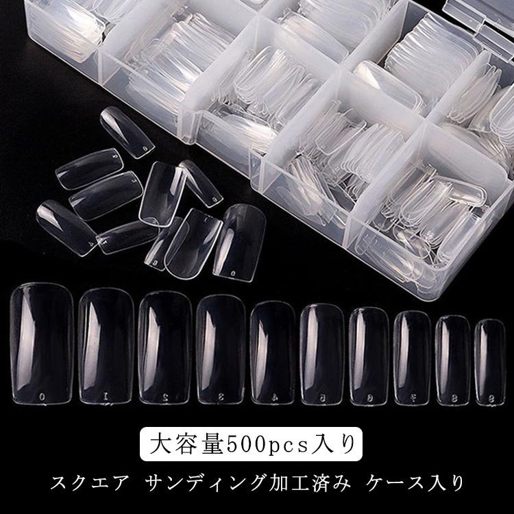 ネイルチップ スクエア 超薄 ラウンド 500枚 ケース入り サンディング加工済み ショート 付け爪