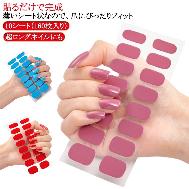 ネイルデザインシール ネイル ジェル セルフネイル 10シート 160枚入 貼って硬化 ネイルシール シンプル 半硬化 硬化タイプ ネイ フット 財布に優しい 爪に優しい