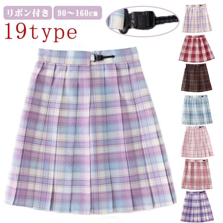 チェック柄 プリーツスカート リボン付き 子供服 女の子 キッズ ポケット 春 夏 秋 90-160cm 七五三 ミニスカート 入園式 入学式 卒園式 卒業式 ペチ インナーパンツ付き 発表会 結婚式