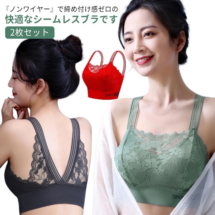 スポーツブラ 2枚セット 2枚セット レース ブラジャー ノンワイヤー 揺れない