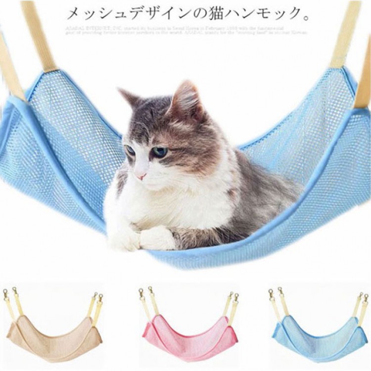 ハンモック キャットハンモック 猫 フック付き メッシュ 通気性抜群 取り付け簡単 熱中症対策 暑さ対策 洗える ケージ用 小動物 夏バテ防止