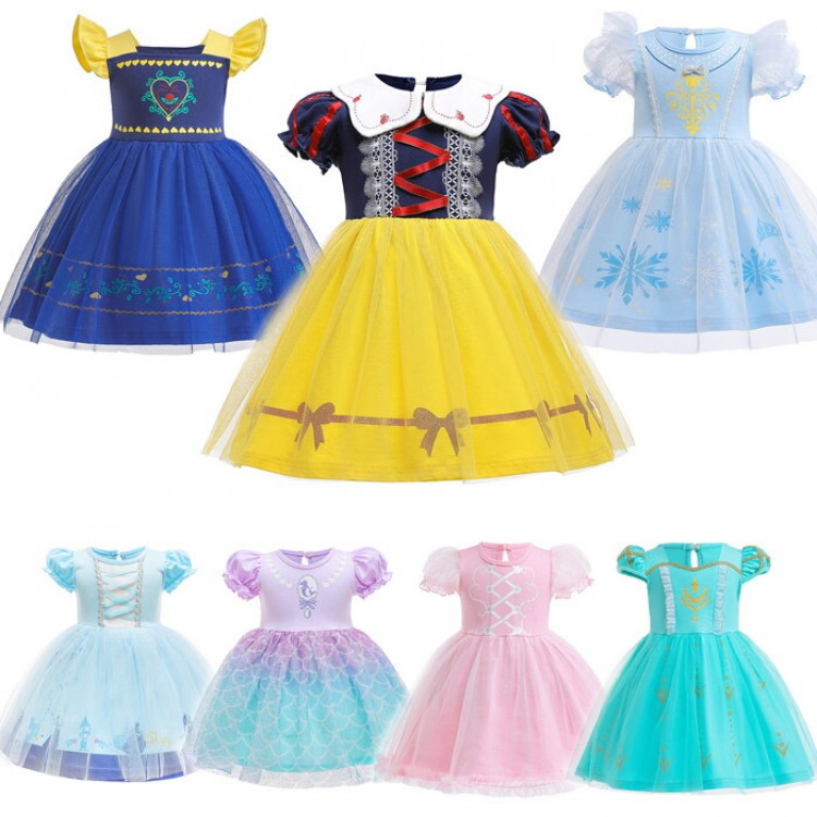 プリンセス ドレス 子供 ワンピース 半袖 アナ ラプンツェル シンデレラ エルサ アリス 白雪姫 雪の女王 アリエル 人魚姫 ベル プリンセスドレス コスチューム コスプレ ソフィア
